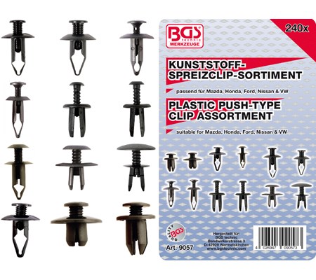 PLASTIC PUSH TYPE CLIP ASSORTMENT FOR MAZDA, HONDA, FORD, NISSAN & VW